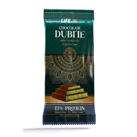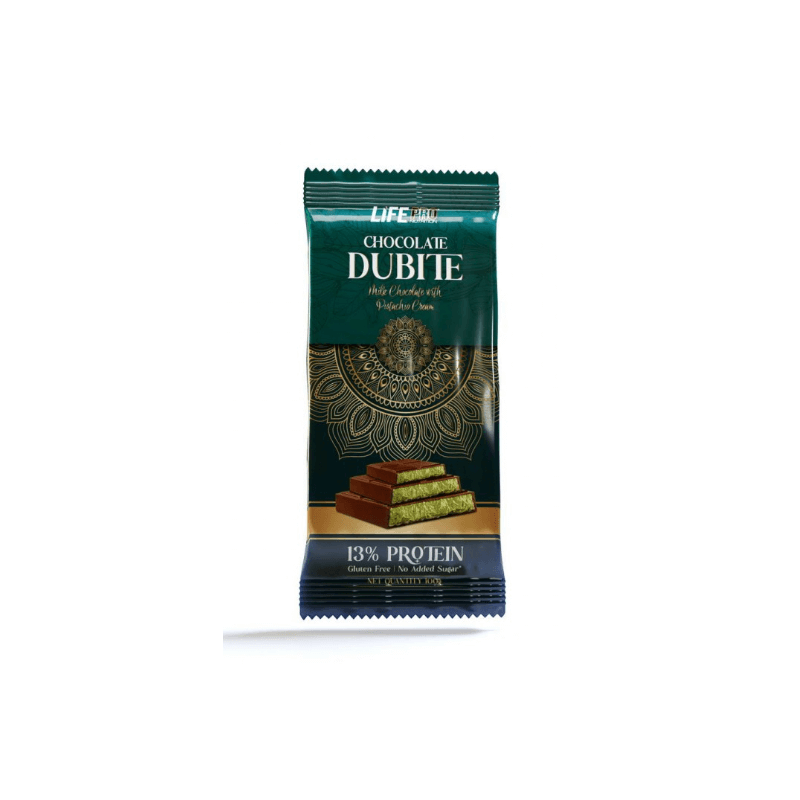 La Dubite Chocolate Bar nace de la fusión entre el placer del chocolate artesanal y la funcionalidad de un snack con aporte proteico. Esta barra de 100 g está pensada para consumidores que no quieren renunciar al sabor —pistacho tostado y chocolate con leche al 42% de cacao— pero sí desean un perfil nutritivo más equilibrado que una tableta convencional.