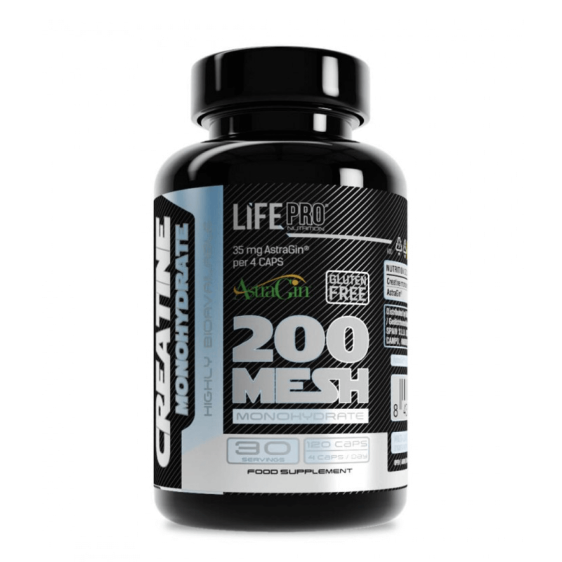 Life Pro Creatina Monohidrato 200 Mesh + AstraGin 120 Capsulas Veganas es un complemento alimenticio de alta calidad formulado para deportistas que buscan optimizar su rendimiento fisico y su desarrollo muscular.