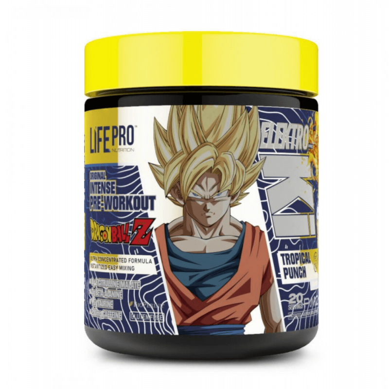 Life Pro Elektro KI Dragon Ball Z Limited Edition es un suplemento pre-entrenamiento en polvo, diseñado para elevar tu energía, concentración y rendimiento físico al máximo. Su fórmula avanzada combina estimulantes, aminoácidos y electrolitos que te ayudarán a entrenar más duro, más tiempo y con mayor intensidad, todo con un sabor increíble y una edición limitada inspirada en Dragon Ball Z.